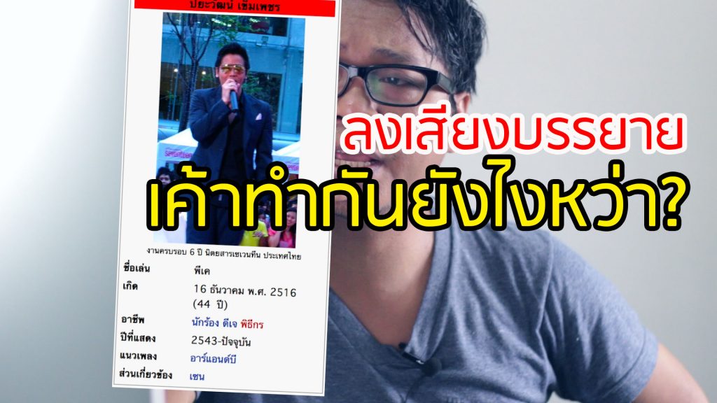 เสียงบรรยายลงกันยังไงเนี่ย คลิปนี้จะแนะนำคร่าวๆ กันไปก่อนนะครับ โดยผมจะลงเป็นเสียงไกด์สำหรับตัดต่อวีดีโอเบื้องต้น เมื่อสคริปต์ทุกอย่างลงตัว ไม่มีการเพิ่มสคริปต์แล้วจึงส่งไปให้คนที่จะลงเสียงจริงๆ