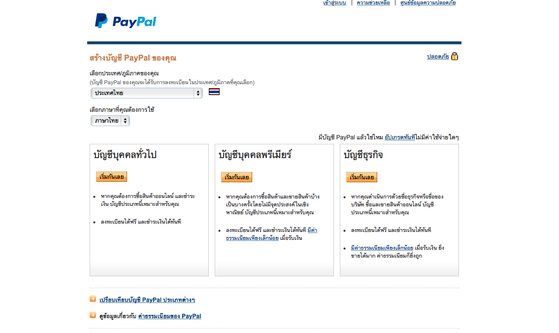 เนื่องจากมีผู้อ่านหนังสือ “ทำสติ๊กเกอร์ LINE ขายเป็นล้าน” สอบถามเข้ามาหลายคนเกี่ยวกับการสมัคร PayPal ประเภท “บัญชีบุคคลพรีเมียร์” ซึ่งปัจจุบันหน้าเว็บของ PayPay ได้ปรับเปลี่ยนไปจากตอนที่เขียนต้นฉบับ จึงทำให้ผู้อ่านหลายคนสับสนว่าจะทำยังไงดี ไม่ต้องห่วงครับ ผมขอนำเสนอวิธีสมัคร “บัญชีบุคคลพรีเมียร์” แบบบ้านๆ ให้ โดยสามารถทำได้ดังนี้ครับ